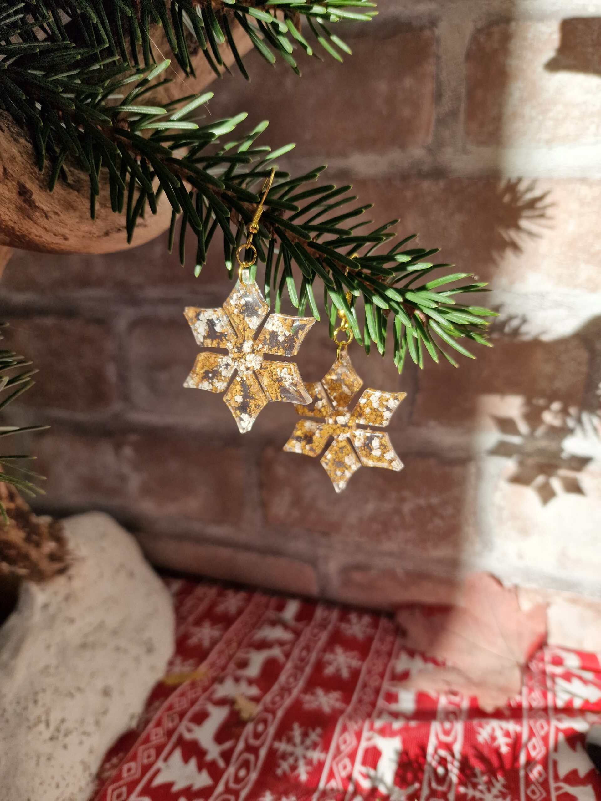 Ces boucles d’oreilles artisanales en forme de flocon de neige associent la pureté du blanc à la chaleur du doré.