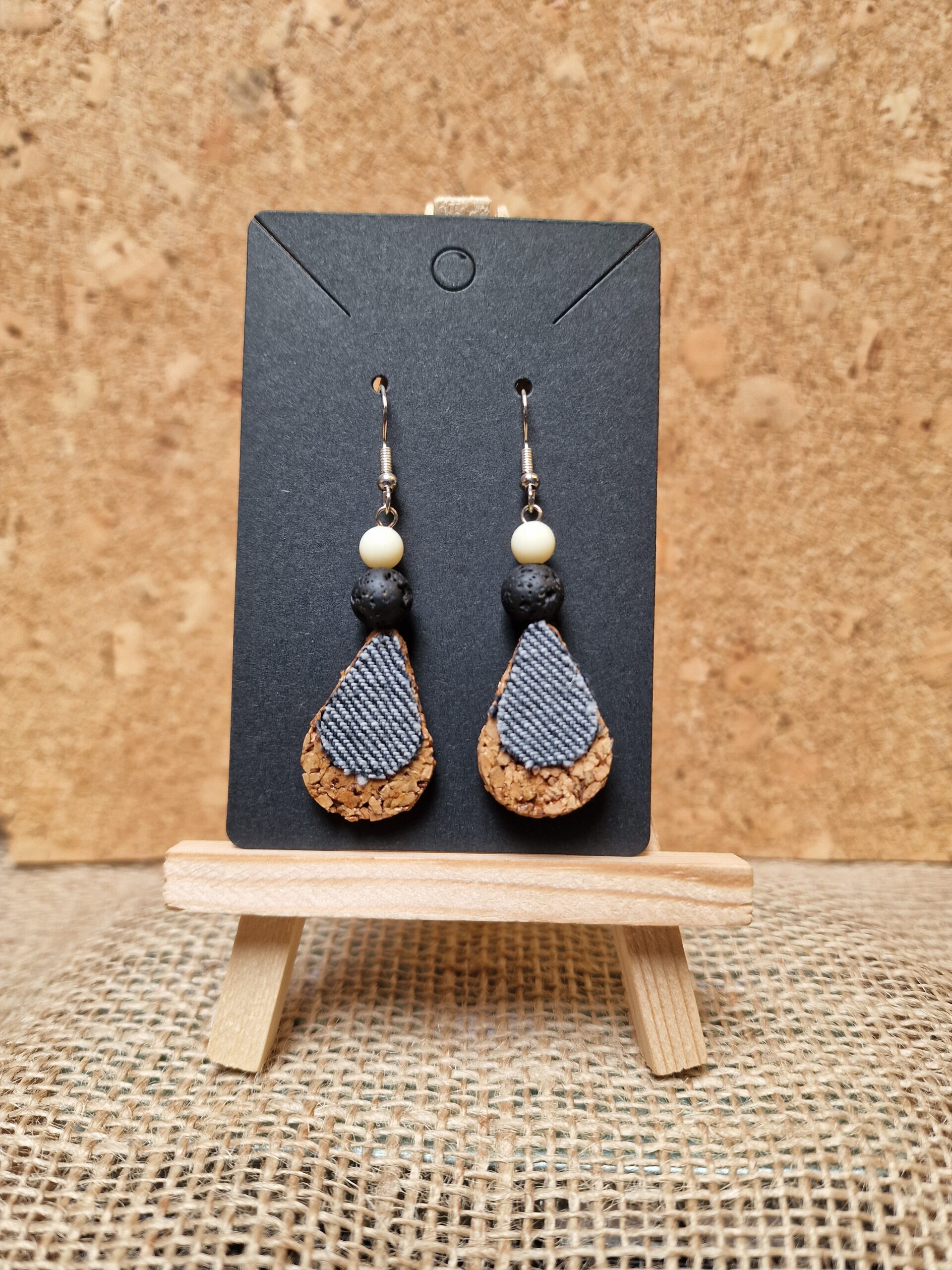 Boucles d’oreilles liège & jean bleu (argenté – 5 cm)