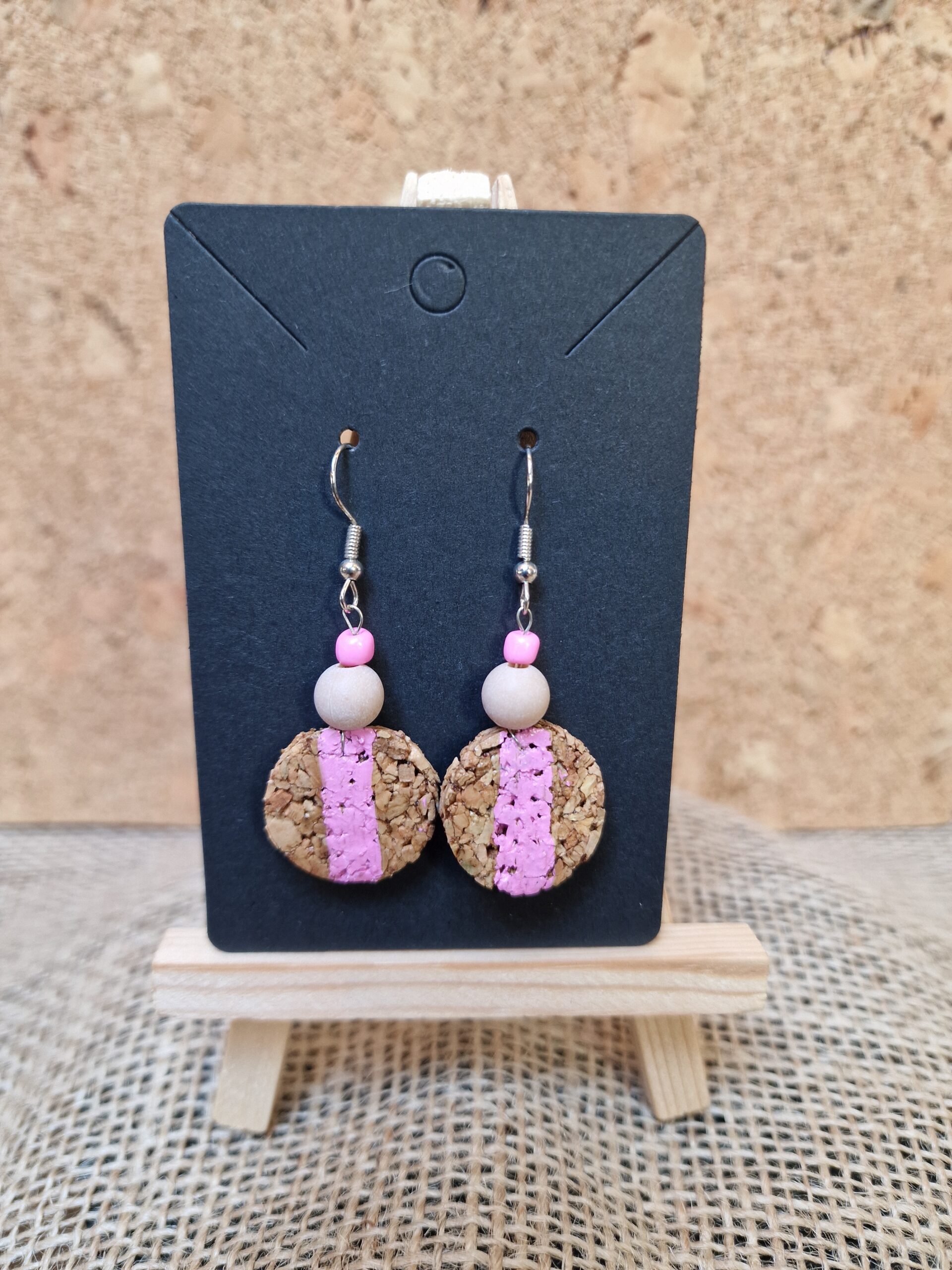 Boucles d’oreilles liège rose (argenté – 5 cm)
