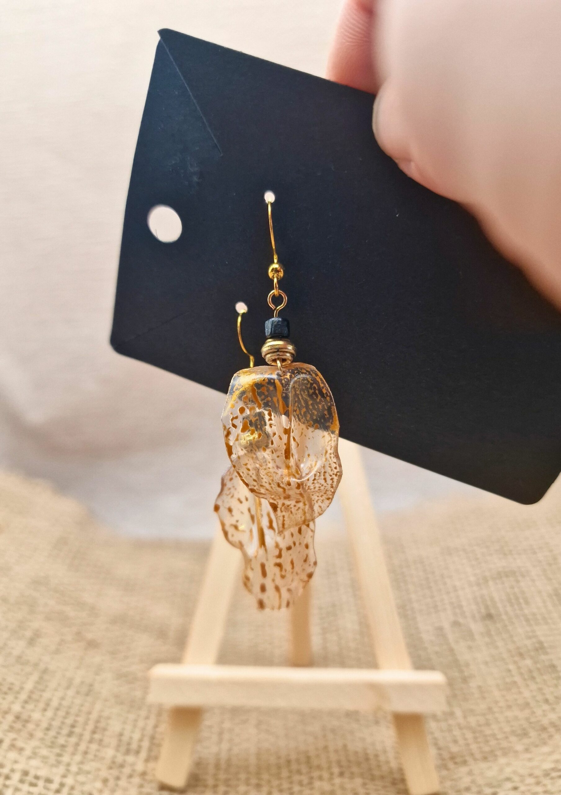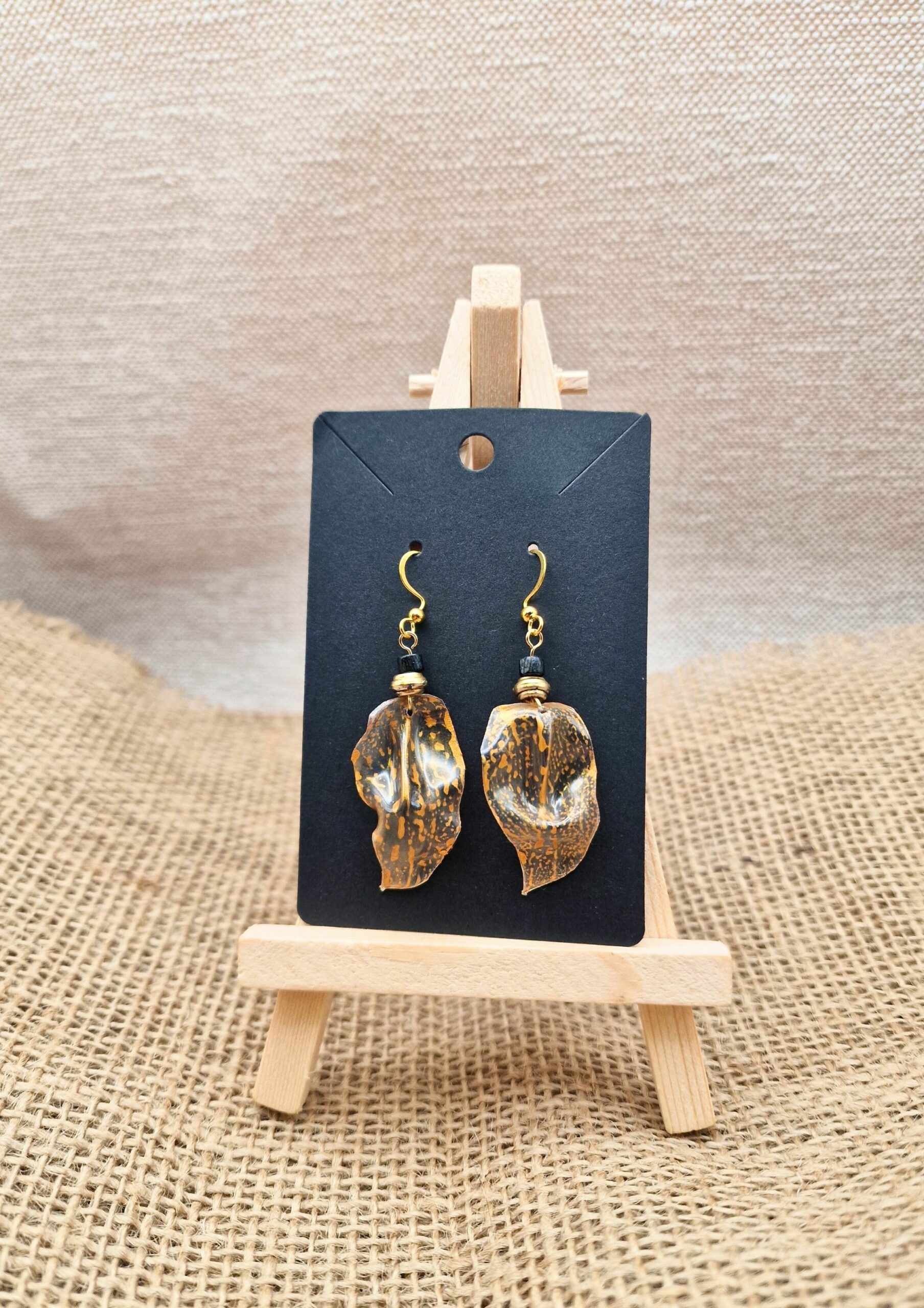 Ces boucles d’oreilles artisanales signées Cé’rénité sont réalisées à partir de plastique recyclé issu de bouteilles, puis peintes à la main.