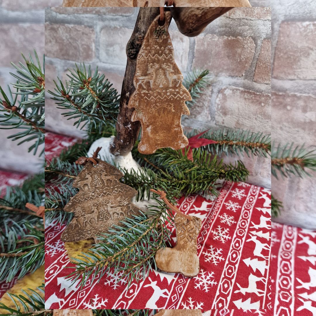 Modelées à la main en argile naturelle et ornées de motifs en relief, elles apportent une touche authentique et douce à votre décoration de Noël.